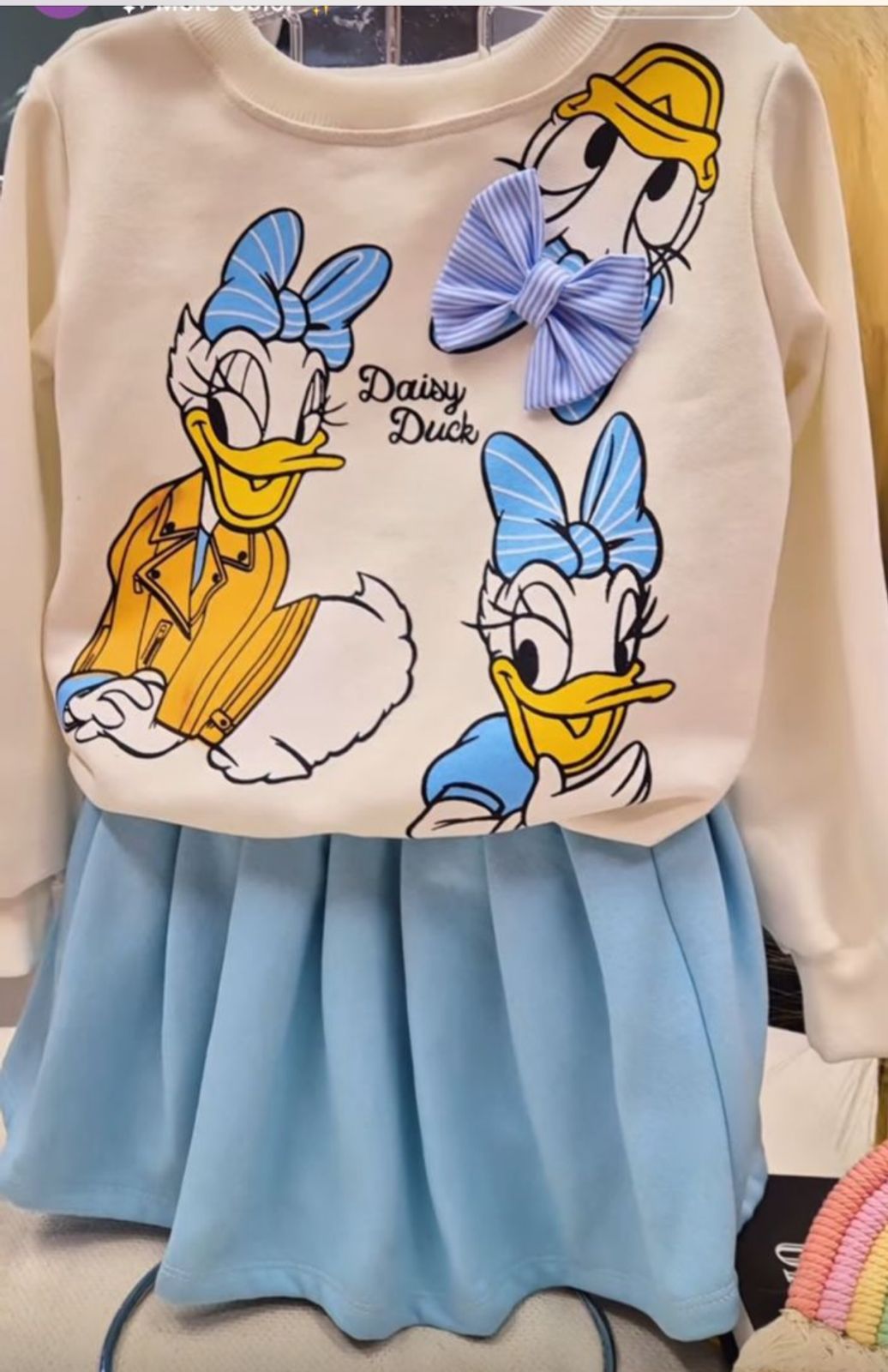 Disponivel nas cores azul e bege, nosso conjunto é composto por um shorts saia + blusa em moletom flanelado.